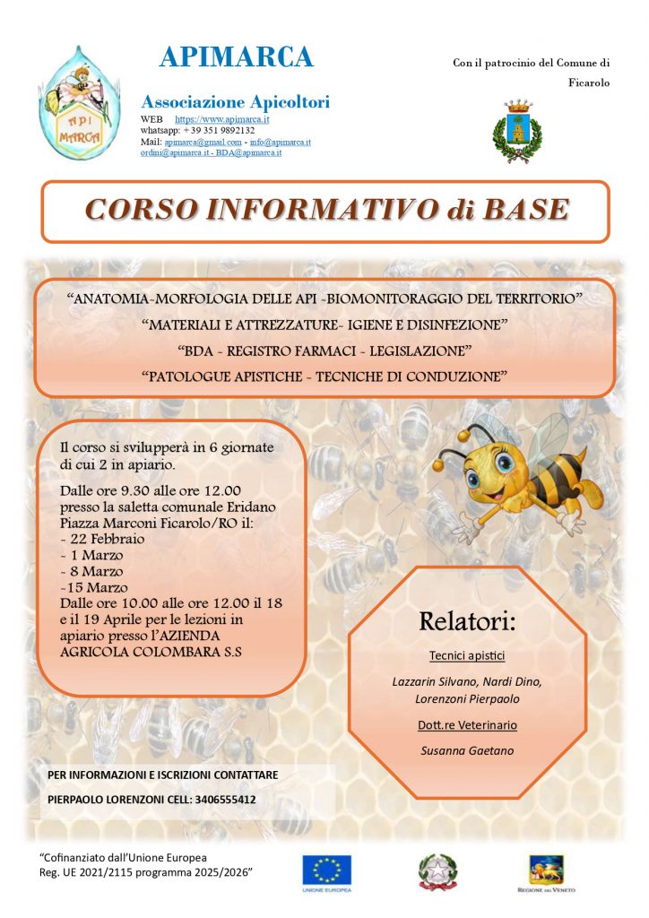 siamo lieti di annunciarti l’avvio del nuovo Corso Informativo di Base organizzato da APIMARCA, con il patrocinio del Comune di Ficarolo e il cofinanziamento dell’Unione Europea.